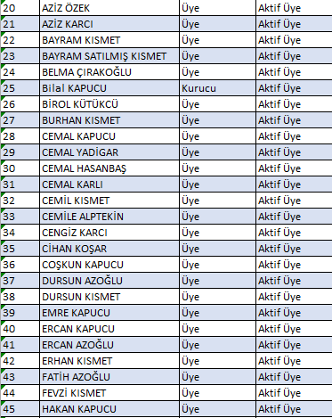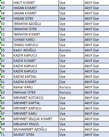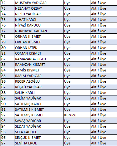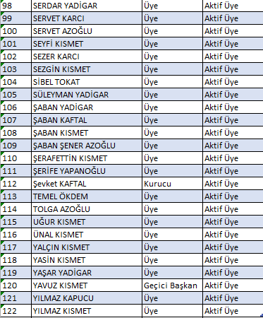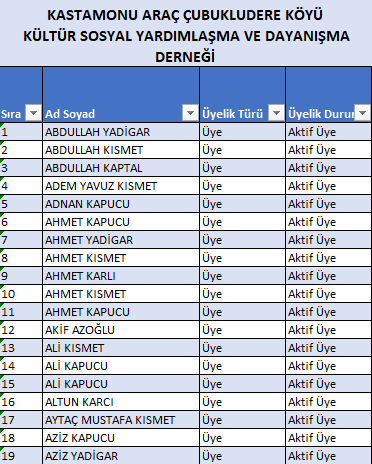 Çubukludere Köyü Kült. Sos. Yard. ve Day. Derneği Üye ve Telefon Listesi